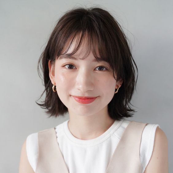 Model rambut medium wanita wajah oval.